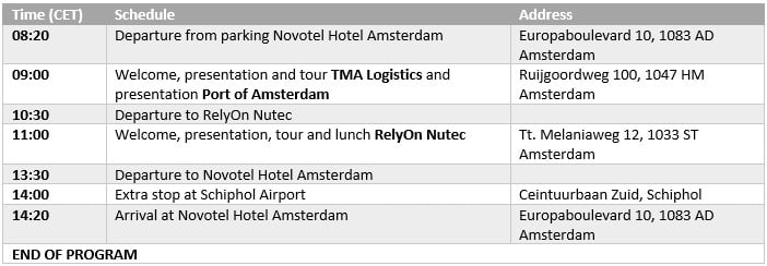 NB: Please note that all tracks will have an extra stop at Schiphol at the end of the day.